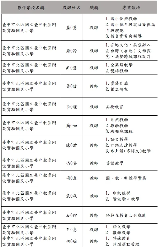 國民小學加註專長課程一覽表
