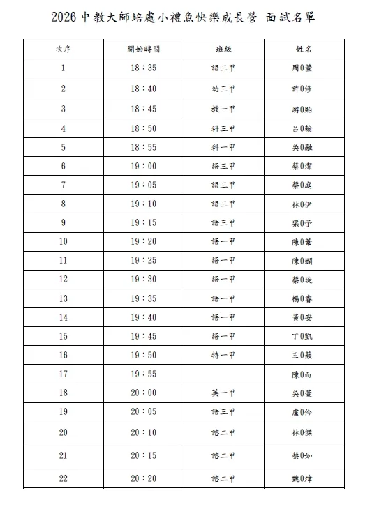 114-2小禮魚快樂成長營面試名單